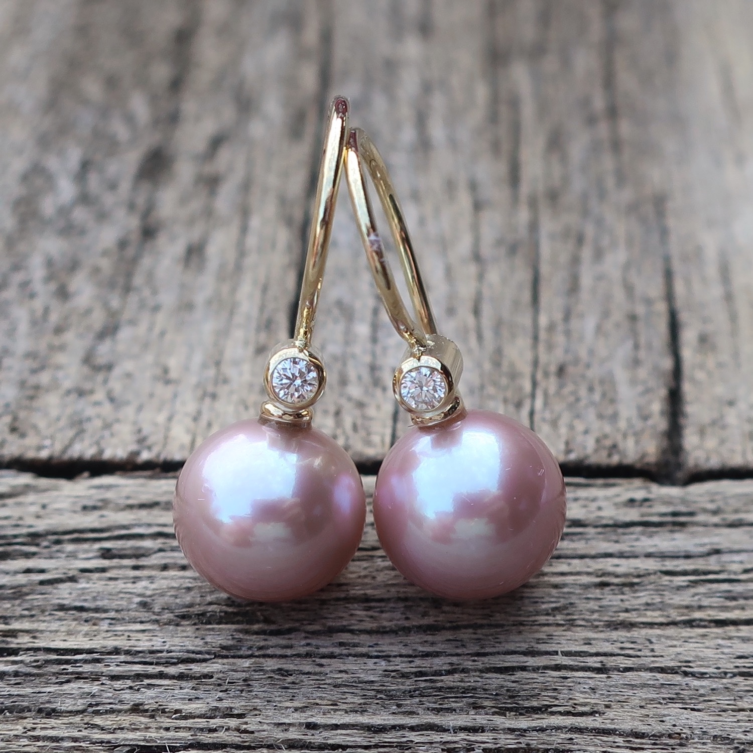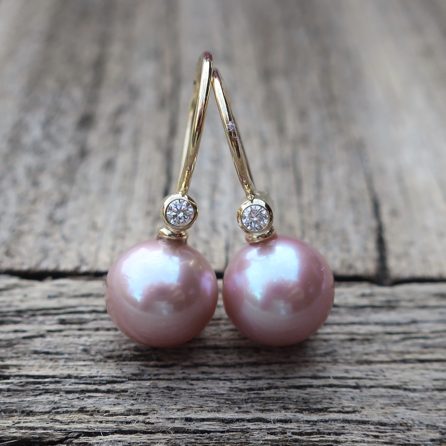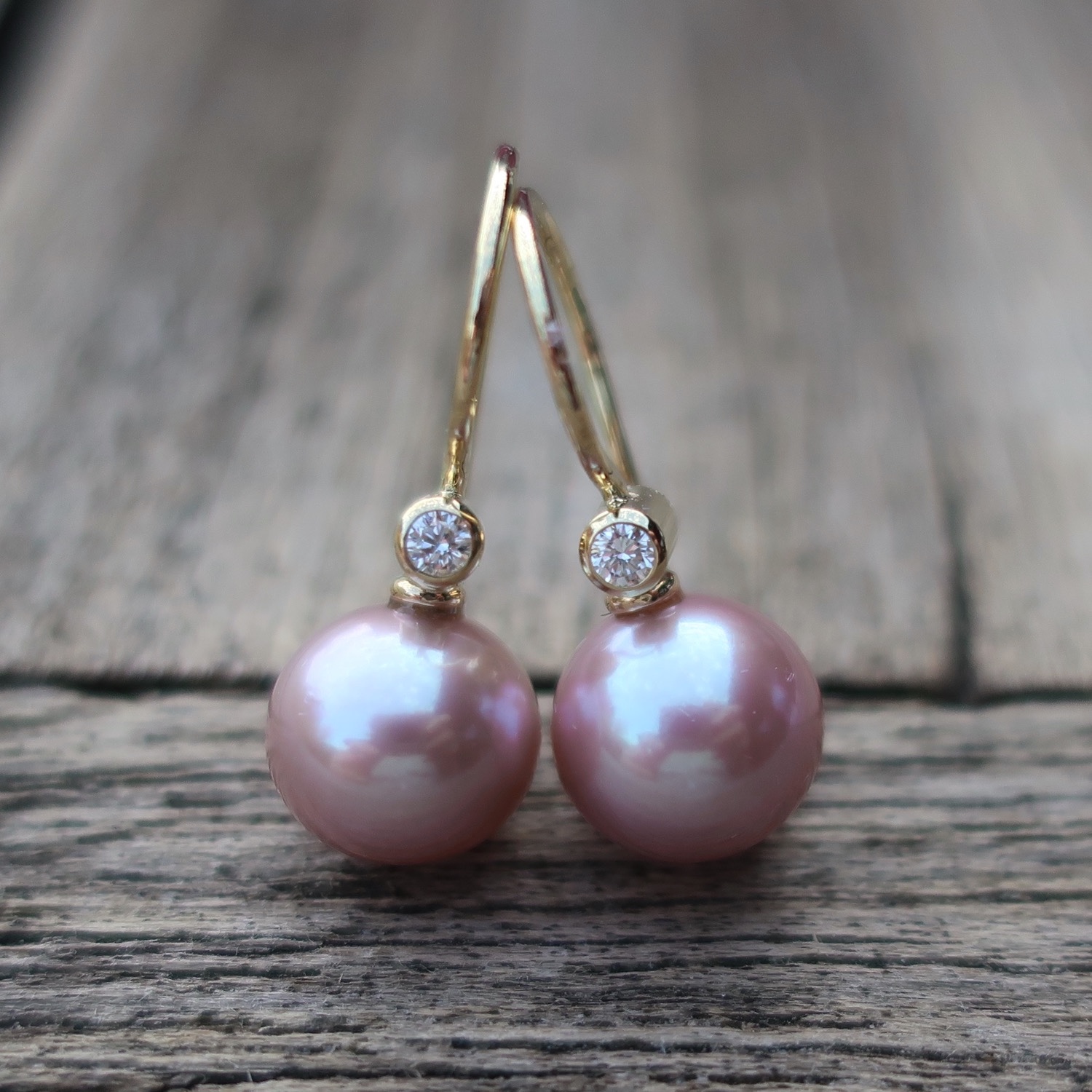 585 Gold Ohrhänger Lavendel Perle 8,5 mm u. Brillanten 0.04 ct