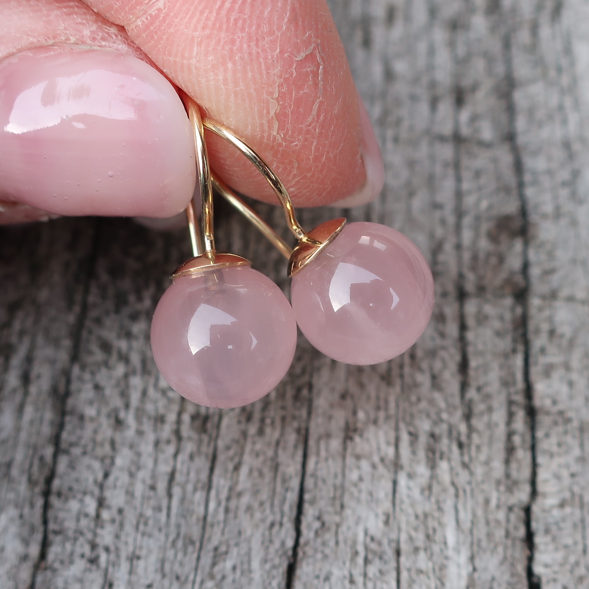 585 Gold Ohrhänger Rosenquarz Kugel 10 mm