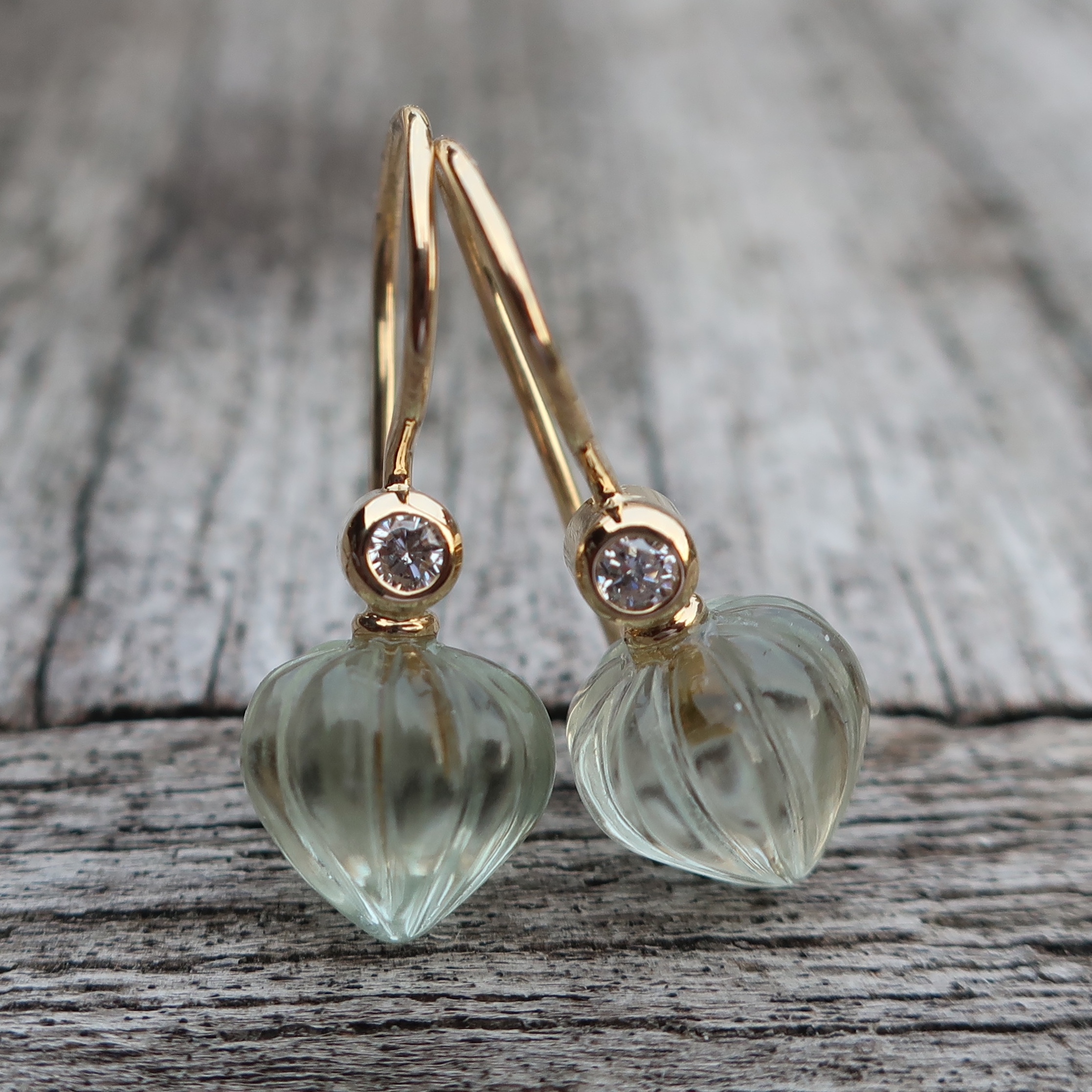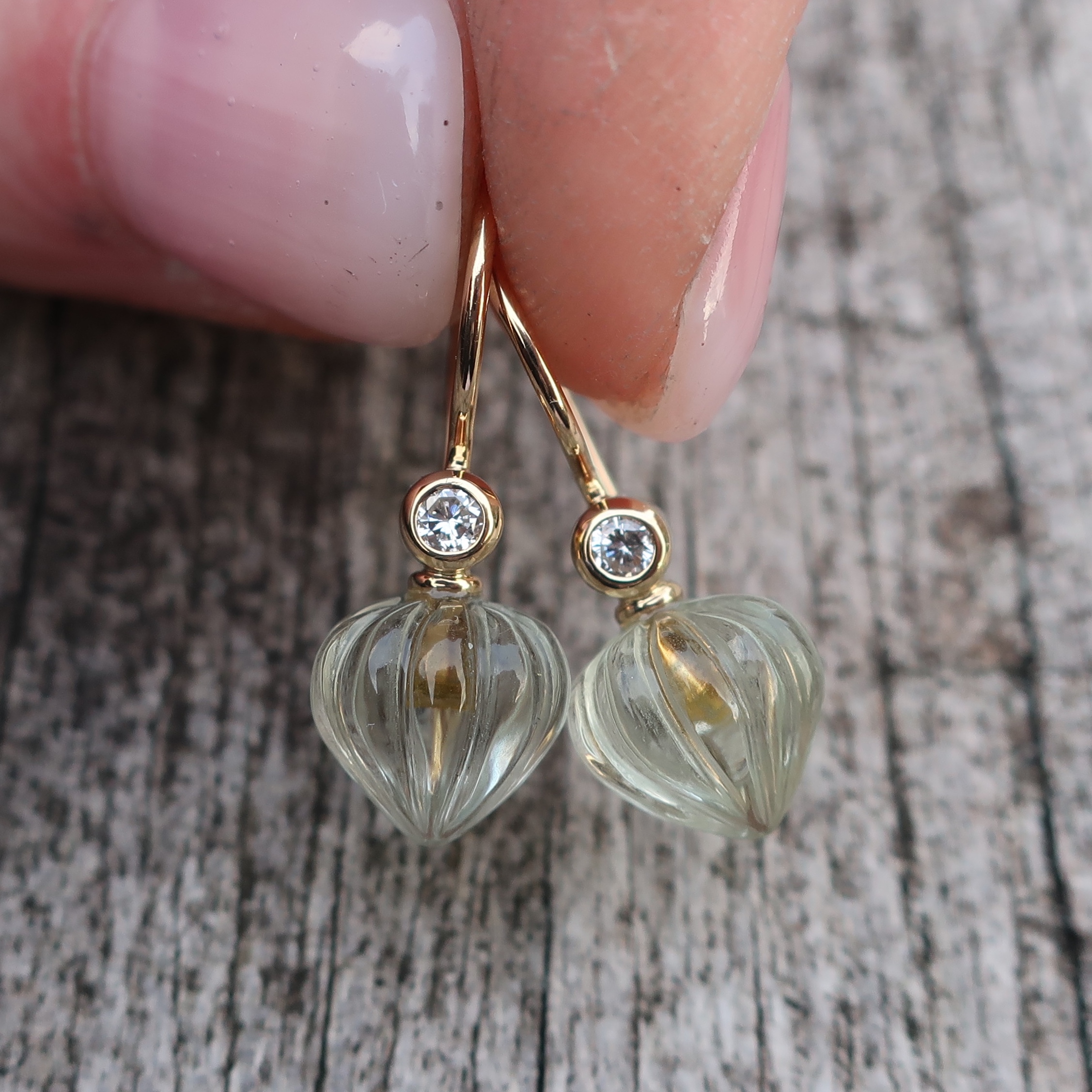 Ein Paar Ohrhänger, bestehend aus Gold mit Prasiolith Zwiebelchen und Brillanten.